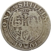 Reverse legend: “ONE SCHILLING • 1901 ••HONI•SO QVI• V• PENSE•”