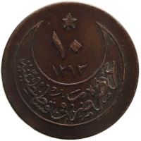 Reverse: Star above denomination with year below. Arabic inscription contained in a crescent moon.