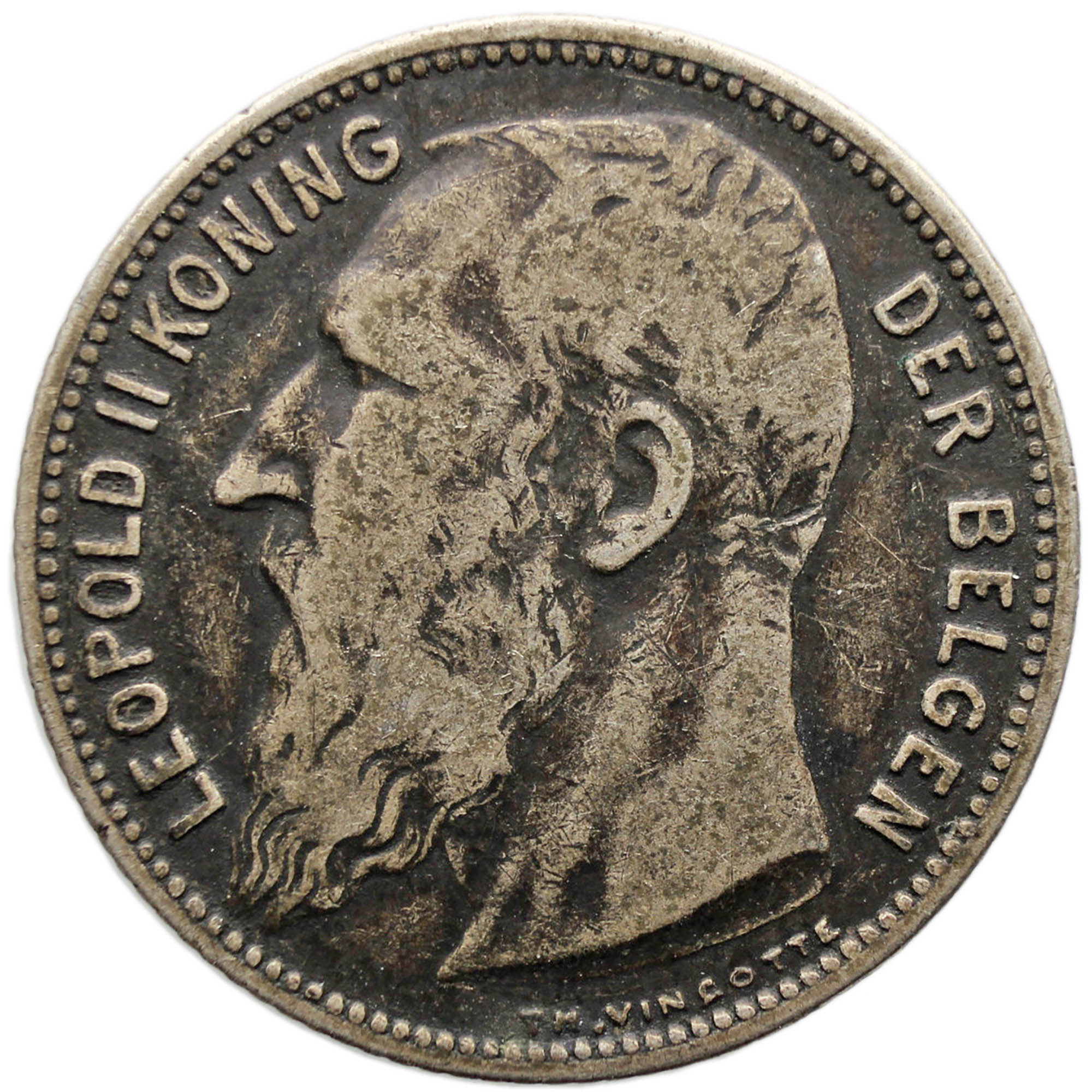 Obverse legend: LEOPOLD II KONING DER BELGEN TH. VINÇOTTE