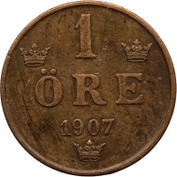 Reverse legend: 1 ÖRE 1907