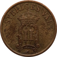 Reverse: Value and date together with the Three Crowns, symbol of Sweden.