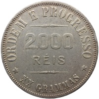 Reverse legend: ORDEM E PROGRESSO 2.000 RÉIS *XX GRAMMAS*