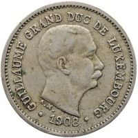 Obverse legend: GUILLAUME GRAND DUC DE LUXEMBOURG A.M. 1908