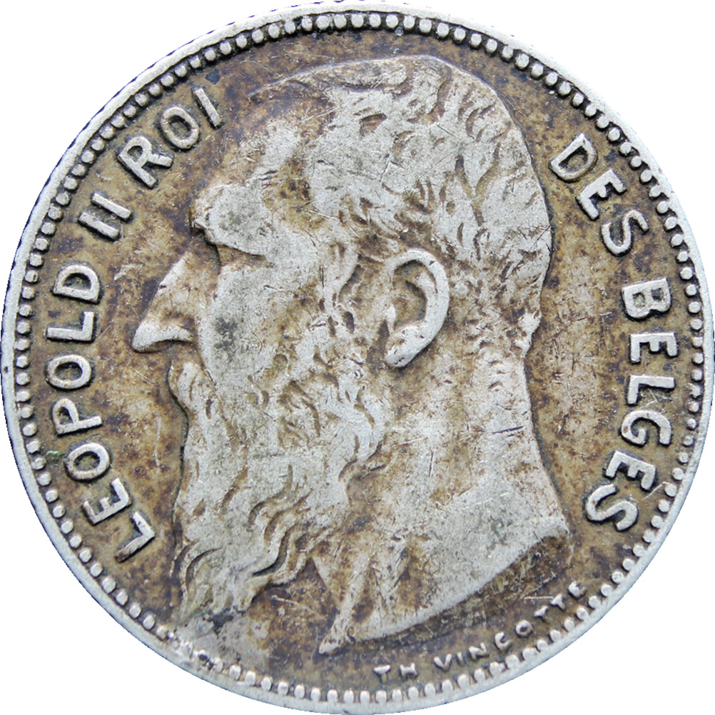 Obverse legend: “LEOPOLD II ROI DES BELGES TH. VINÇOTTE”