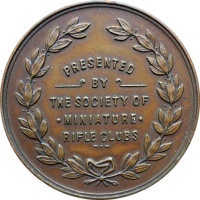 Reverse: High relief wreath around, within wreath, Presented by The Society of Miniature Rifle Clubs.