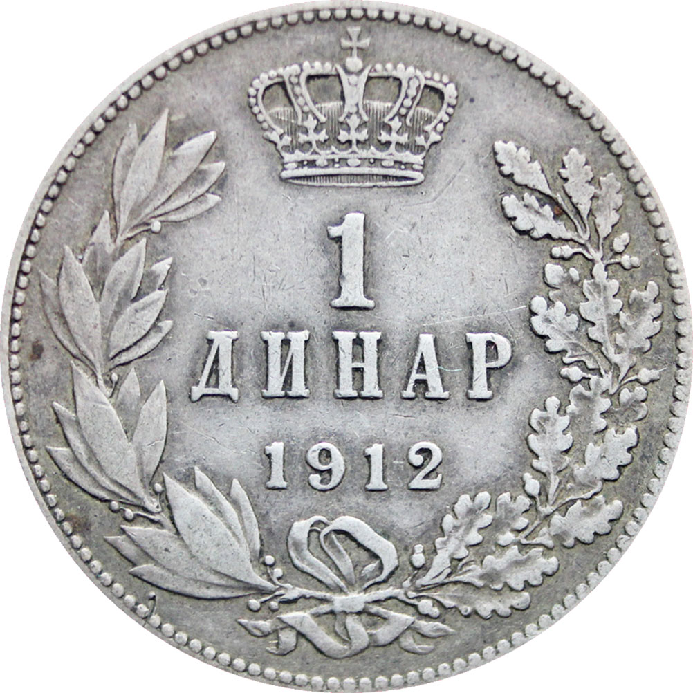 Reverse legend: “1 ДИНАР 1912”