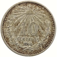 Reverse legend: LIBERTAD 10 M CENTAVOS 1914