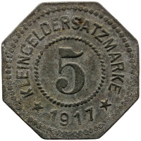 Reverse legend: “KLEINGELDERSATZMARKE 5 ✭ 1917 ✭”