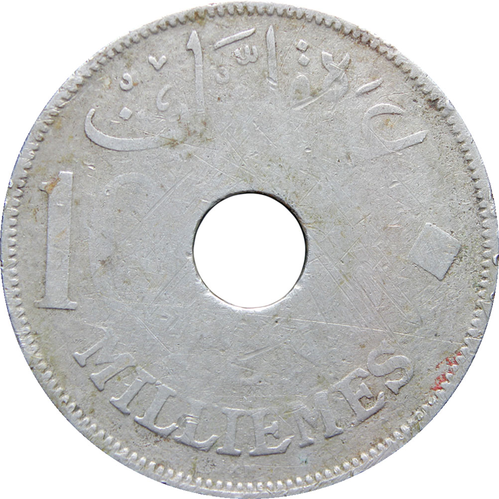 Reverse legend: “عشرة مليمات ١٠ 10 TEN MILLIEMES KN”