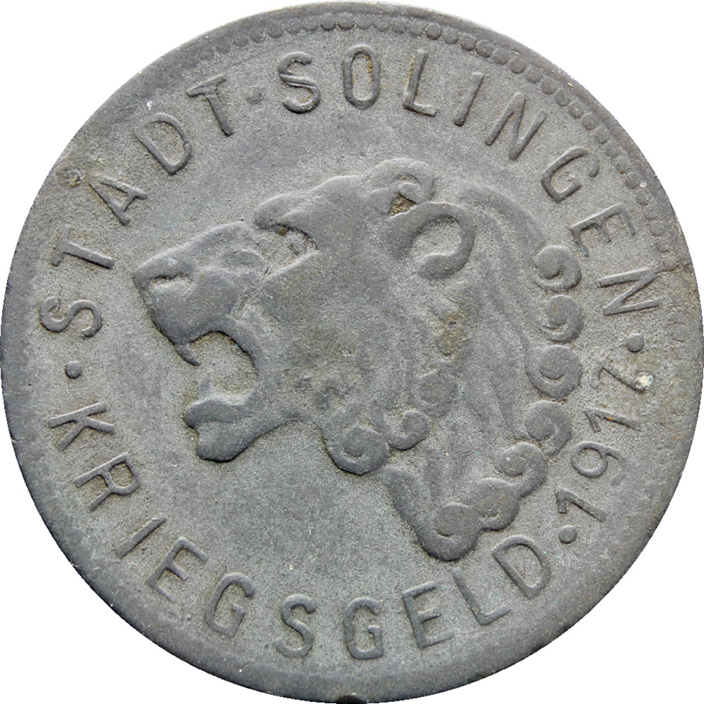 Obverse legend: “STADT SOLINGEN ・ KRIEGSGELD ・1917・”
