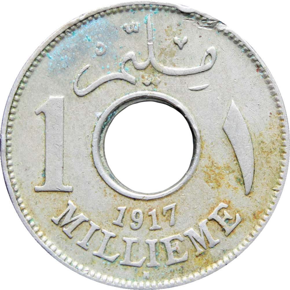 Reverse legend: “مليم 1 ١ 1917 MILLIEME”