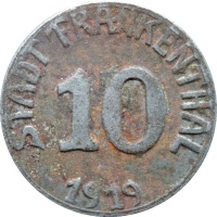 Reverse legend: “STADT FRANKENTHAL 10 1919”