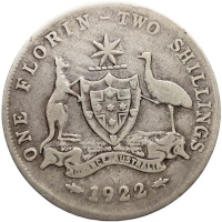 Reverse legend: ONE FLORIN - TWO SHILLINGS ADVANCE AUSTRALIA 1922