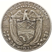 Obverse legend: REPUBLICA DE PANAMA ********* PRO MUNDI BENEFICIO LEY GR 0.900 6.25 1931