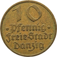 Obverse legend: 10 Pfennig Freie Stadt Danzig