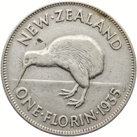 Reverse legend: NEW·ZEALAND ONE·FLORIN·1935 KG