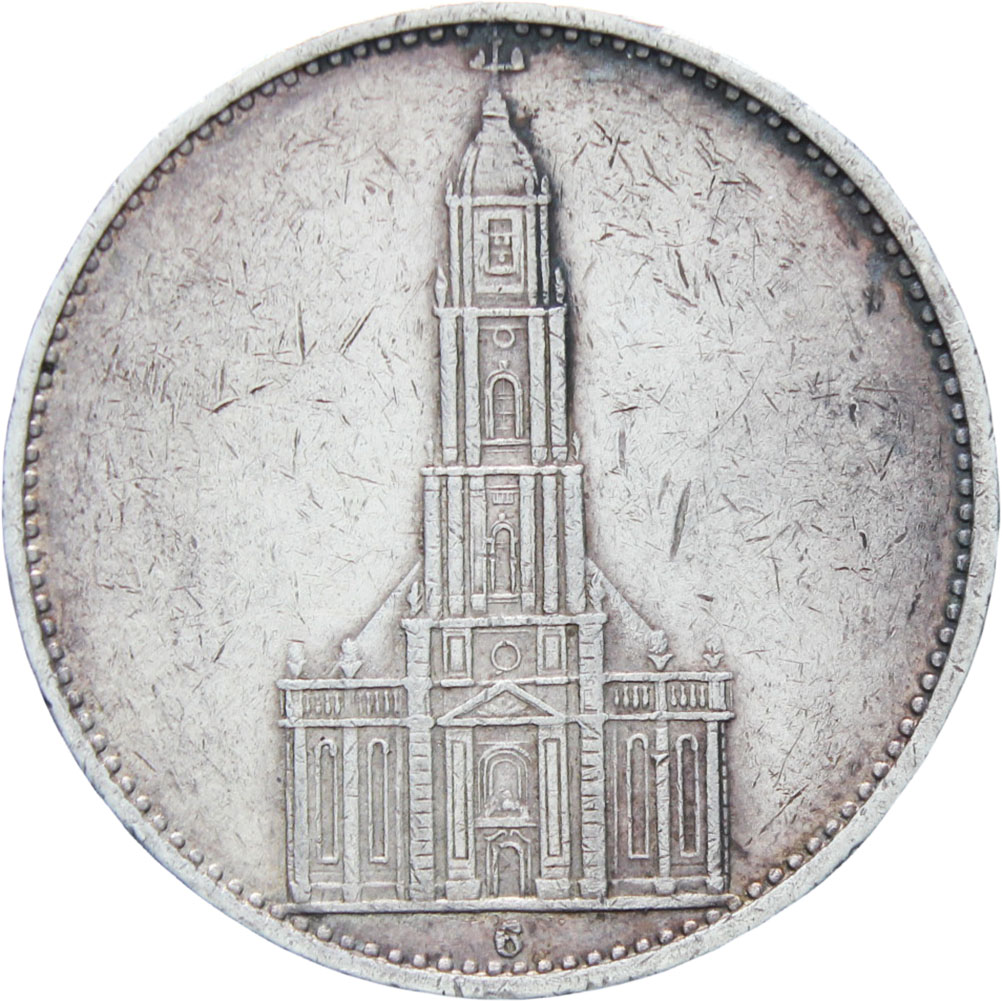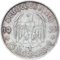 Obverse legend: “Deutsches Reich 1935 5 Reichsmark”