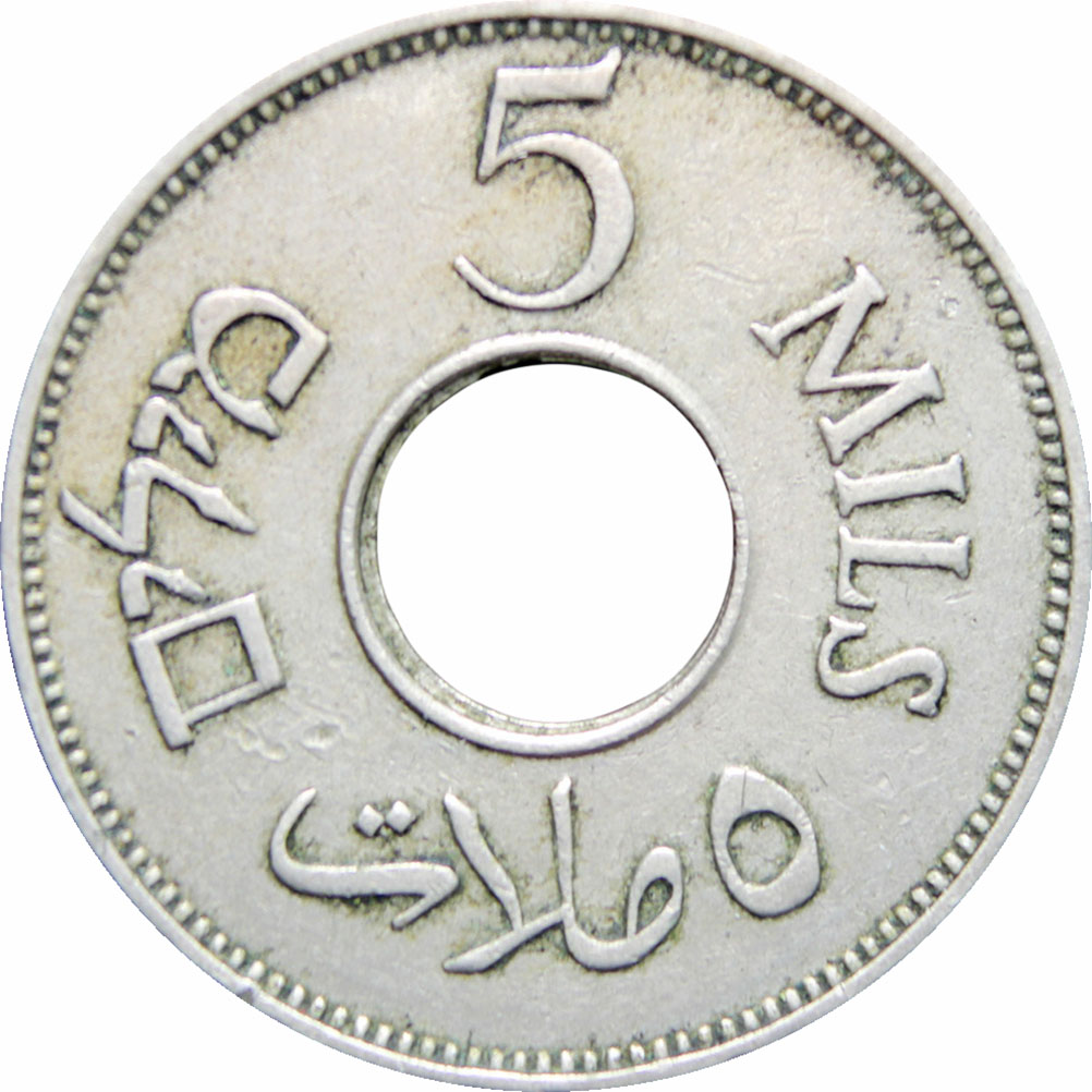 Reverse legend: “5 MILS ٥ ملات מילים”