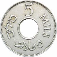 Obverse legend: “פלשתינה(אי) • PALESTINE • فلسطين 1935”