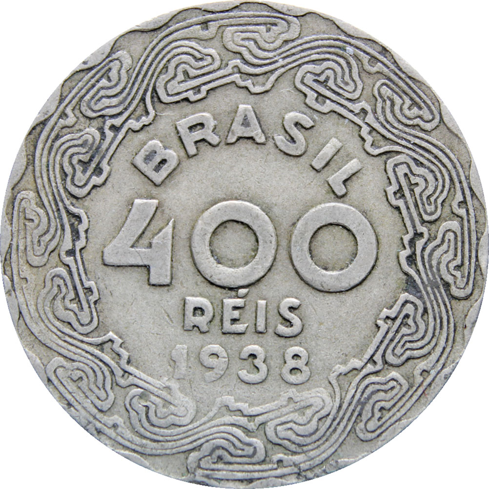 Reverse legend: “BRASIL 400 RÉIS 1938”