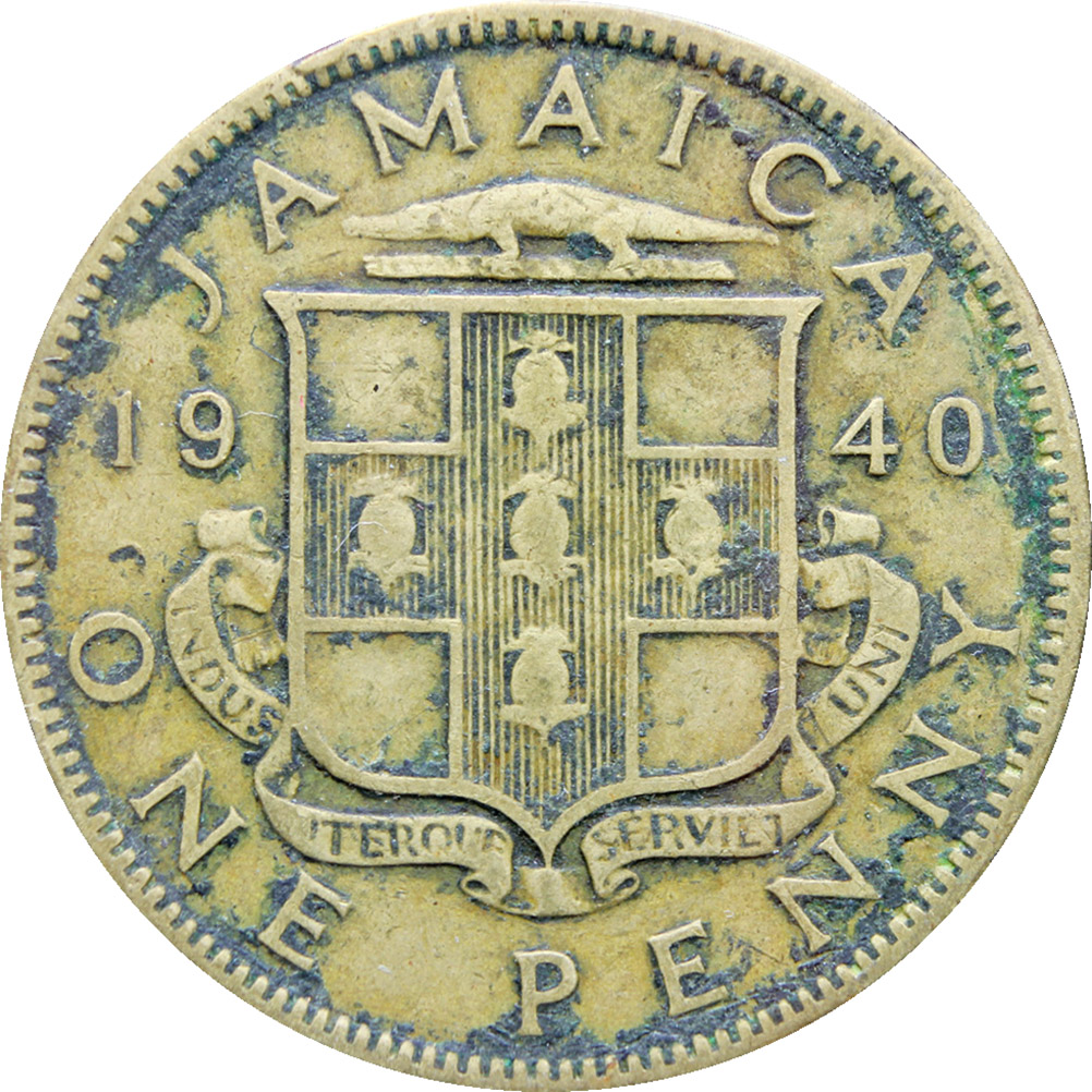 Reverse legend: “JAMAICA 19 40 ONE PENNY”