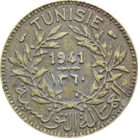 Obverse legend: “TUNISIE 1941-١٣٦٠ العمالة التونسية”