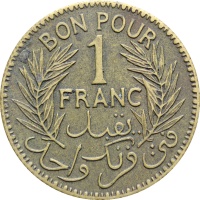 Reverse legend: “BON POUR 1 FRANC يقبل في فرنك واحد”
