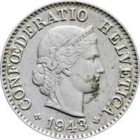 Obverse legend: “CONFŒDERATIO HELVETICA *1943*LIBERTAS”