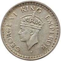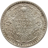 Reverse legend: 1/4 RUPEE INDIA 1944 چار آنہ