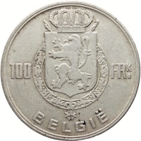 Obverse: Heads of Kings Leopold I, Leopold II, Albert I and Leopold III facing left. Crown dividing date above.