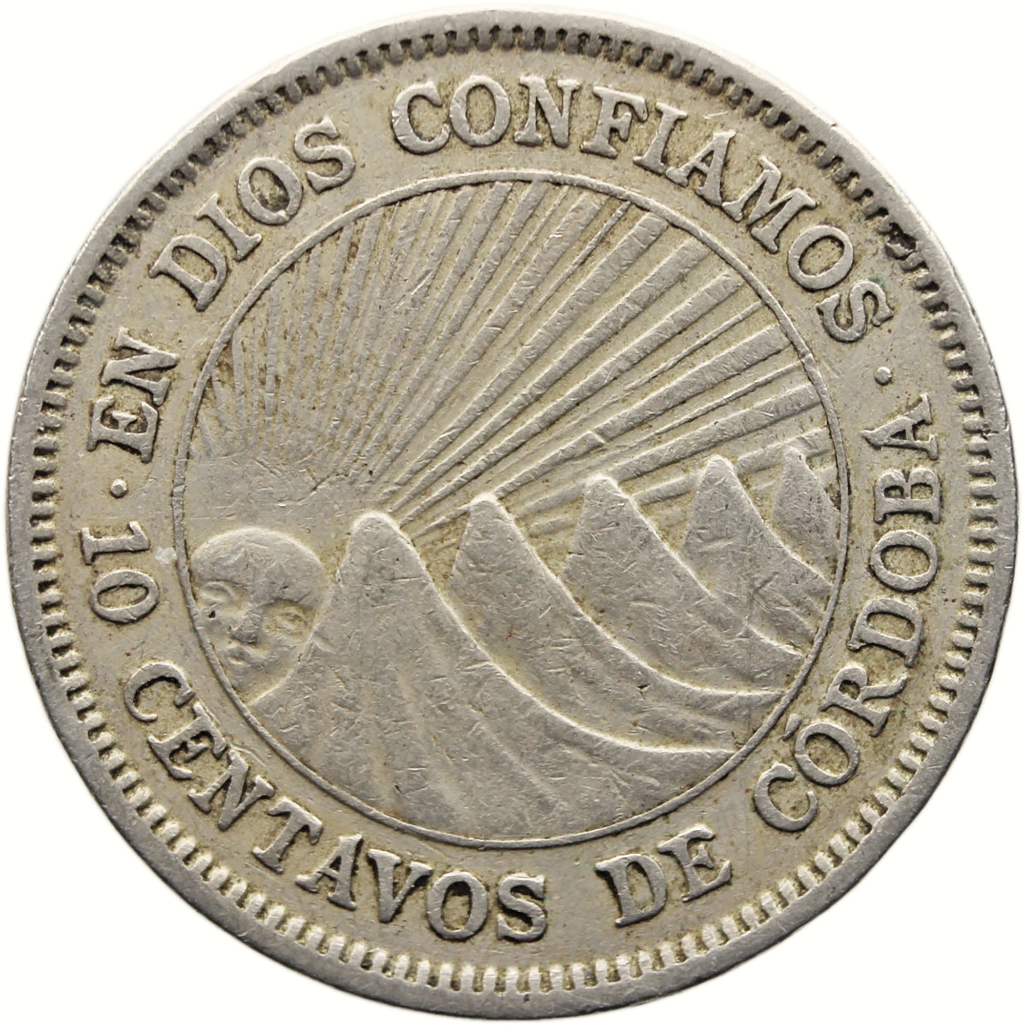 Reverse legend: EN DIOS CONFIAMOS 10 CENTAVOS DE CÓRDOBA