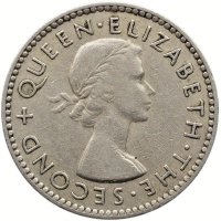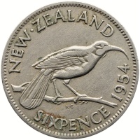 Reverse legend: NEW·ZEALAND K·G SIXPENCE 1954