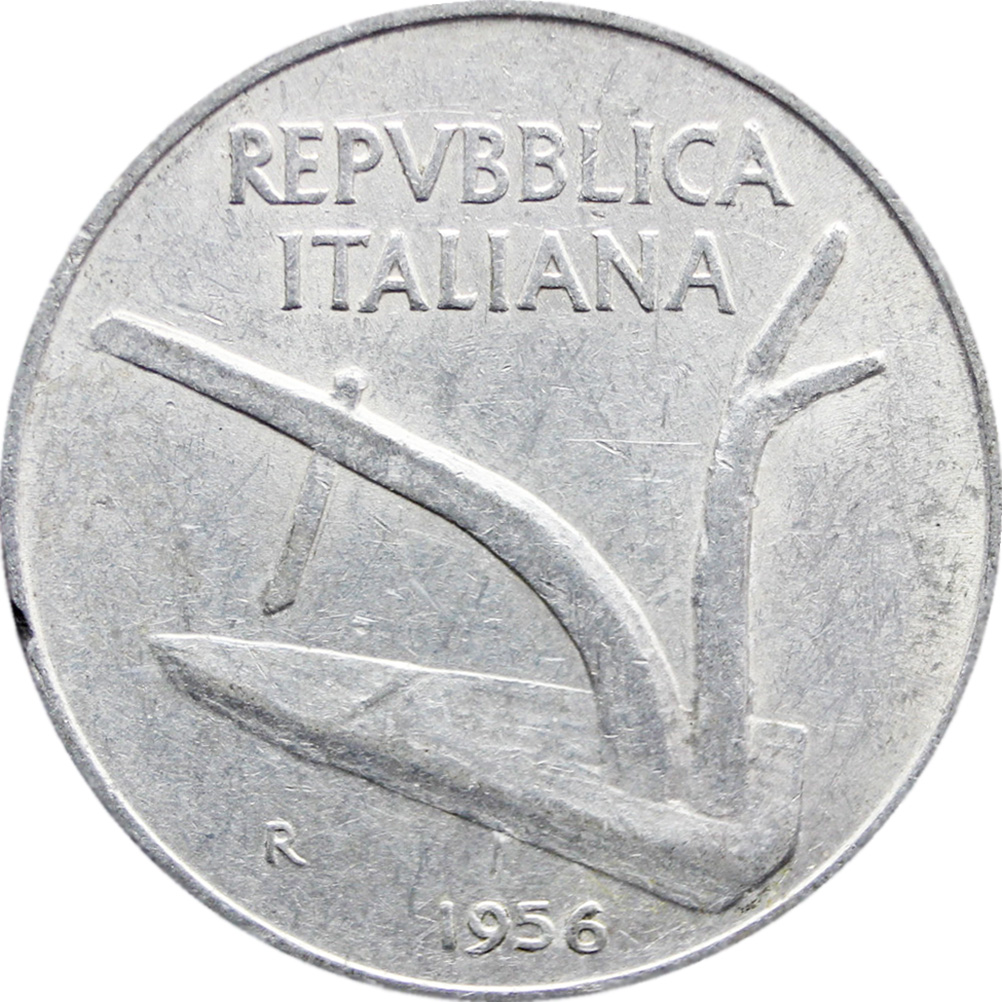 Obverse legend: “REPVBBLICA ITALIANA R 1956”