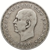 Obverse legend: ΠΑΥΛΟΣ ΒΑΣΙΛΕΥΣ ΤΩΝ ΕΛΛΗΝΩΝ 1960