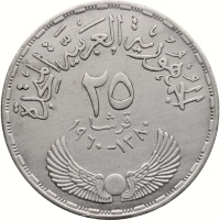 Obverse legend: الجمهورية العربية المتحدة ٢٥ قرشا ١٣٨٠ - ١٩٦٠