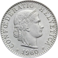 Obverse legend: “CONFŒDERATIO HELVETICA LIBERTAS 1960”