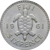 Reverse legend: “FIJI 19 61 SIXPENCE”