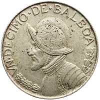 Reverse: Armoured bust of Vasco Núñez de Balboa, a Spaniard and the first European who crossed the Isthmus reaching the Pacific by land and the first to discover the Perlas Archipelago in 1513, with the value above