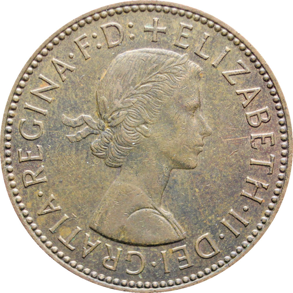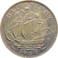 Reverse legend: “HALF PENNY HP 1965”