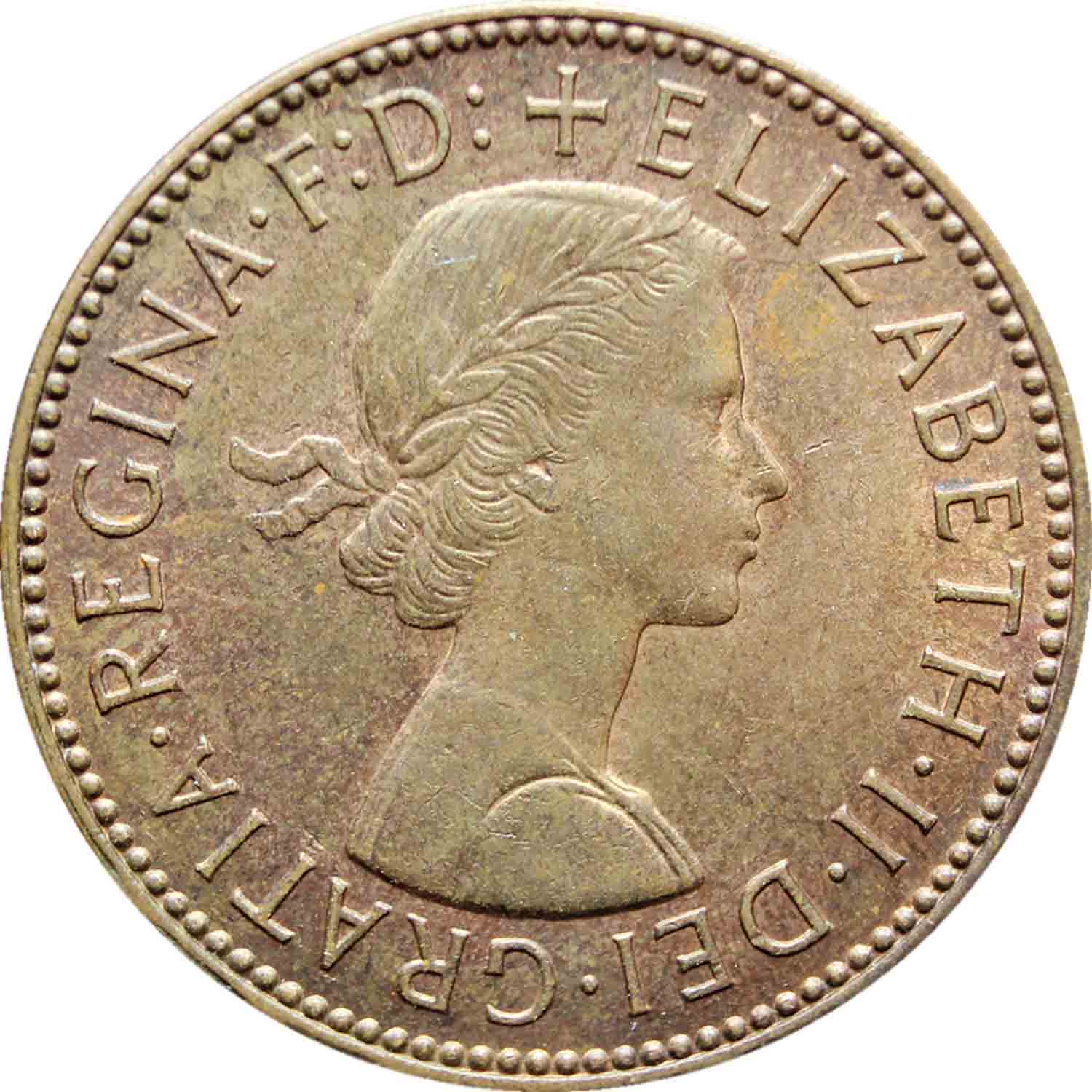 Obverse legend: “+ELIZABETHIIDEIGRATIAREGINAF:D:”