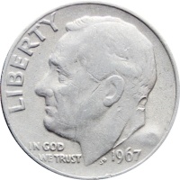 Obverse legend: “LIBERTY IN GOD WE TRUST 1967 JS”