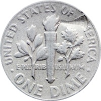 Reverse legend: “E • PLU RIB US • U NUM UNITED STATES OF AMERICA • ONE DIME •”