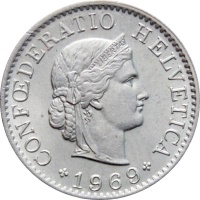 Obverse legend: “CONFŒDERATIO HELVETICA *1969*LIBERTAS”