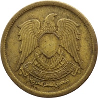 Obverse: The arms of the Federation of Arab Republics (Hawk of Qureish), name of issuer under.