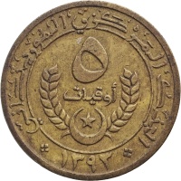 Reverse legend: البنك المركزي الموريتاني ٥ أوقيات ١٣٩٣