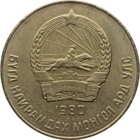 Obverse legend: БНМАУ 1980 БҮГД НАЙРАМДАХ МОНГОЛ АРД УЛС