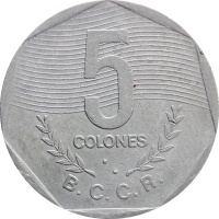 Reverse legend: “ 5 COLONES B.C.C.R.”