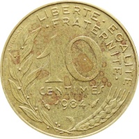 Reverse legend: “LIBERTE·EGALITE ·FRATERNITE· 10 CENTIMES 1984 A. DIEUDONNE”