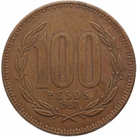 Reverse legend: 100 PESOS 1987