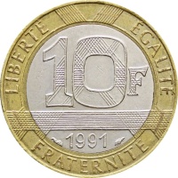 Reverse legend: “LIBERTÉ EGALITÉ 10F 1991 FRATERNITÉ”